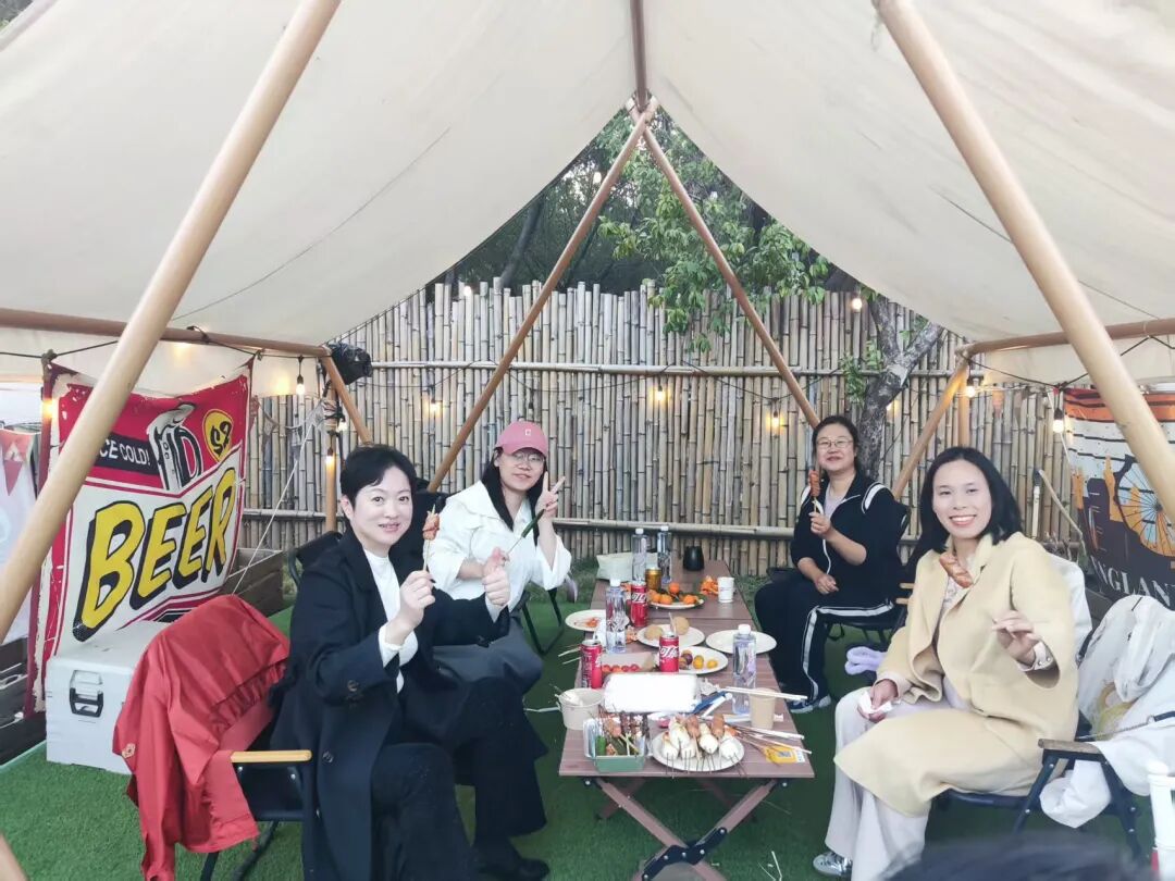 到达营地后,没有紧凑的会议安排,也没有刻意设计的游戏环节,大家自由组队,各寻乐趣。有的同事围坐在天幕下煮茶聊天,敞开心扉分享执业路上的成长与收获,畅谈对未来的憧憬与期待;有的同事化身“主厨”,在烧烤架前大展身手,烹制美味佳肴;还有的同事沿着营地悠然漫步,尽情感受春日的惬意……从市中心的高楼大厦到山野的天幕之下,从西装革履的严谨到运动休闲的自在——变的是场景,不变的是我们始终并肩同行的默契与情谊。